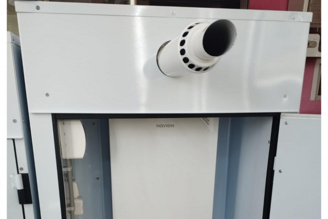 Это газовый отопительный котел уличного размещения, изготовлен на базе газового котла Navien Deluxe, предназначенный для использования в жилых домах, общественных зданиях и зданиях производственного назначения.