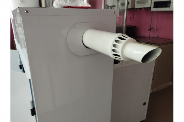 Котел укомплектован всем необходимым для его работы. В него уже встроен расширительный бак, сетевой насос, автоматика защиты от замерзания, внутреннее освещение, утепленный и защищенный корпус, а также комплект коаксиального дымохода.