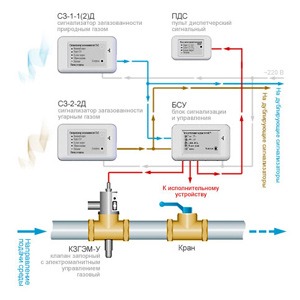 Система обеспечивает закрытие клапана при отключении питающей сети. Для устойчивой работы в условиях кратковременных падений сетевого напряжения предусмотрена задержка в несколько секунд. В системе предусмотрен контроль целостности всех соединительных кабелей. Предусмотрена специальная световая индикация повреждения линий связи: с клапаном на блоке сигнализации и управления, с диспетчерским пультом — на пульте, а на нарушение целостности линии, соединяющей сигнализаторы между собой и с блоком сигнализации и управления, система реагирует как на загазованность с выдачей световой и звуковой сигнализации и перекрытием подачи газа.