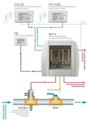 Обеспечение безопасной эксплуатации газовых котлов, газонагревательных приборов и другой газоиспользующей аппаратуры в котельных, газоперекачивающих станциях, производственных и бытовых помещениях. Применение системы значительно повышает безопасность эксплуатации газового оборудования и является необходимым в соответствии с предписывающими документами Ростехнадзора.