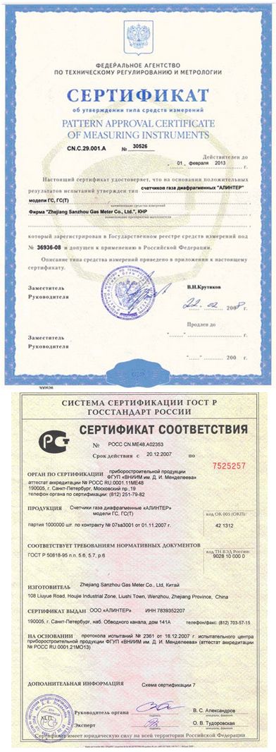 Счетчик газа «Алинтер ГС-4» (левый и правый)