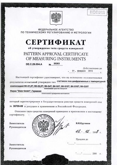 Для корректировки влияния температуры газа на показания отсчётного устройства в конструкцию счётчиков введено устройство с биметаллической температурной компенсацией. Биметаллическая компенсация при температурах газа отличных от нормальной температуры по ГОСТ 2939-63, изменяет объём измерительных камер и тем самым, осуществляет приведение объёма потребляемого газа к стандартным условиям.