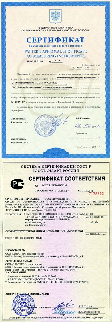 В зависимости от типа применяемого счетчика газа комплекс СГ-ТК имеет следующие исполнения: